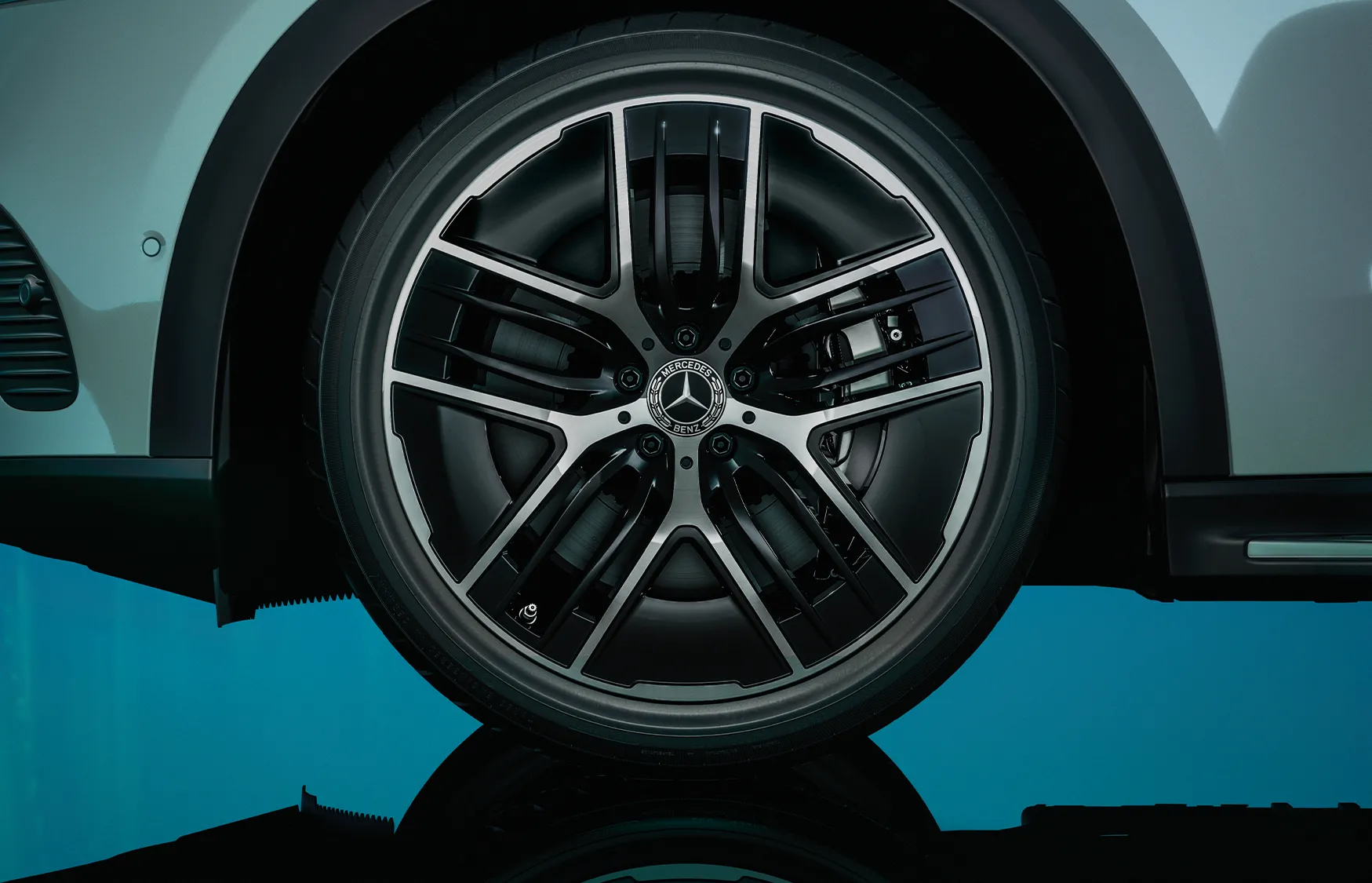 The aerodynamically optimized wheels vary in sizes from 19 to 21 inches and are positioned flush with the outer edge of the body and lend a commanding stance.